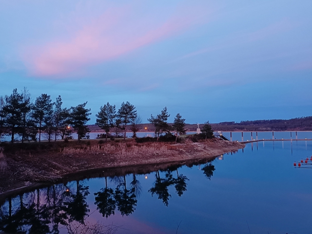 Während in den warmen Monaten fröhliche Stimmen, Wasserplätschern und Motorengeräusche die Ufer erfüllen, zeigt sich der Brombachsee im Winter von seiner sanften und beinahe poetischen Seite. Das Wasser liegt glatt und ruhig da, der Himmel färbt sich in Pastelltönen und der Steg spiegelt sich sanft in der Oberfläche. Ein Moment, in dem man spürt, wie der See tief durchatmet.